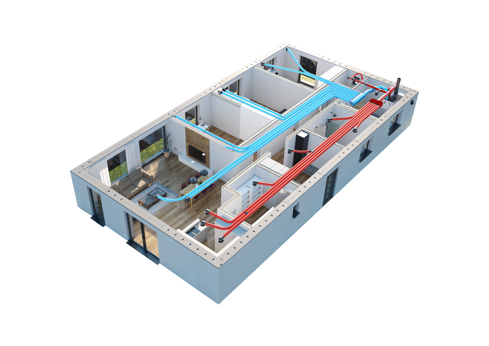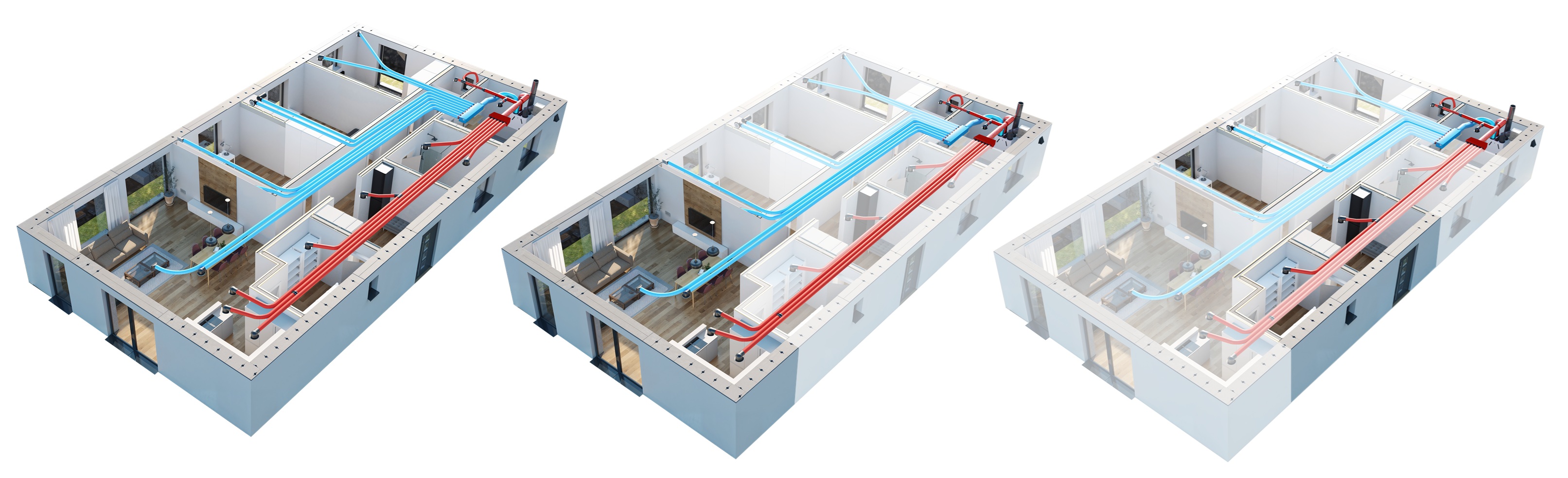 Větrání je v principu směrováno do místnosti/ místností, kde vzniká škodlivina. Momentálně lze využít tzv. dvouzónové regulace, kdy objekt obvykle projektant rozdělí na denní a noční zónu. Často je řízen časovým harmonogramem nebo čidly CO2. Za jednotkou se rozvod s přívodním vzduchem větví a je zde osazena trojcestná neboli směšovací klapka.
