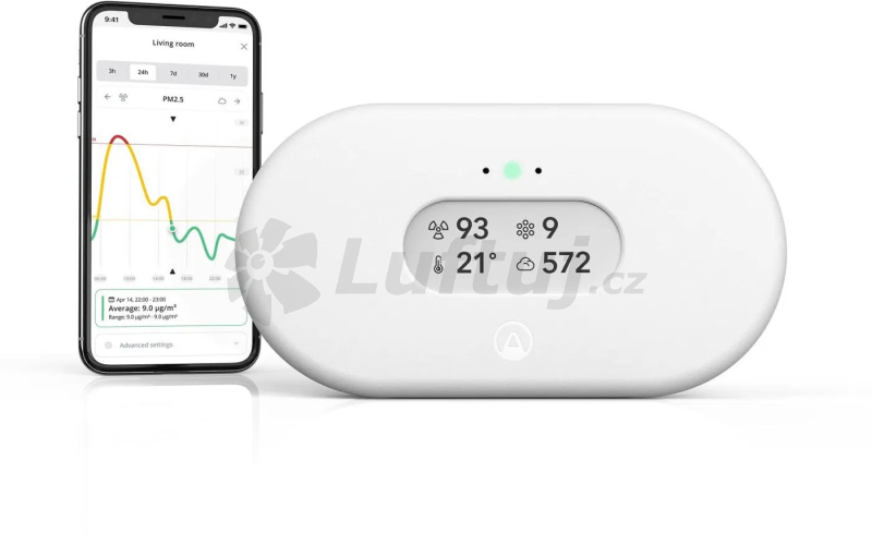Typ detekce: CO2 (oxidu uhličitého), Kvality vzduchu, Prachových částic, Radonu, Teploty, Tlaku vzduchu, TVOC (těkavé látky), Vlhkosti