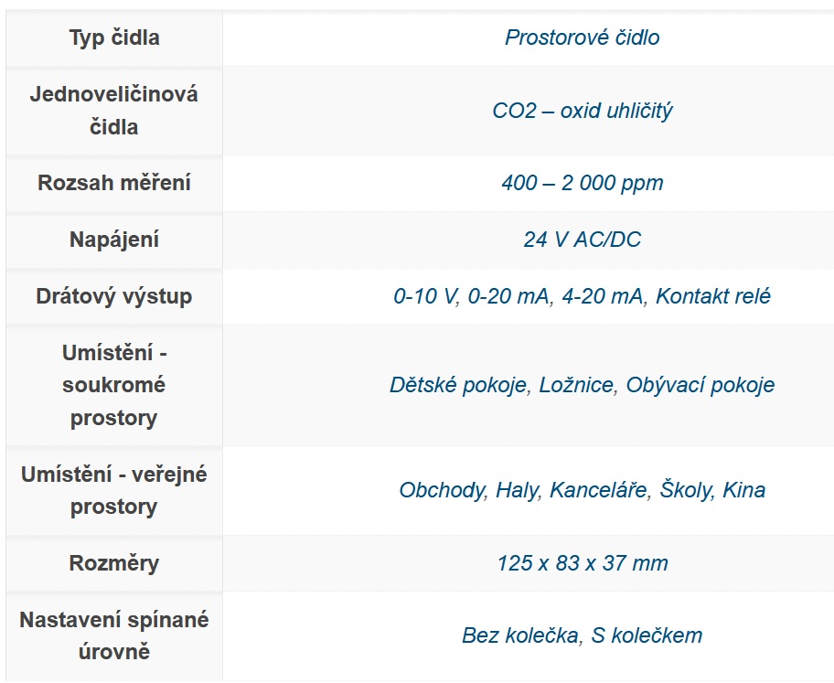 Prostorové čidlo koncentrace oxidu uhličitého. - prostorové čidlo CO2 - kompatibilní s 99% větracích jednotek na trhu - napájení 12 a 24 V AC/DC