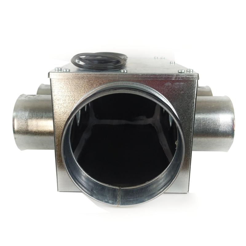 Plastové stropní boxy AT pro vzduchotechnický rekuperační systém 90 mm flexibilního potrubí Dalflex, ComfoTube, ED-FLEX, ROZ-DUOTEC, Ubbink Air Excellent, Klimaflex, Octopus AE48c, HEATTPEX Aria, Kermi x-well, FLXP, Atera GreenPipe, Lindab Indom. Mají ergonomický tvar a jsou velmi těsné. Výška boxu je pouze 10 cm, tzn. že nad sádrokartonem v místě boxu je nutná mezera pouze 8,8 cm (nezapomeňte ovšem, že potrubí 7,5cm musí projít nad rastry a musí být kotveno).