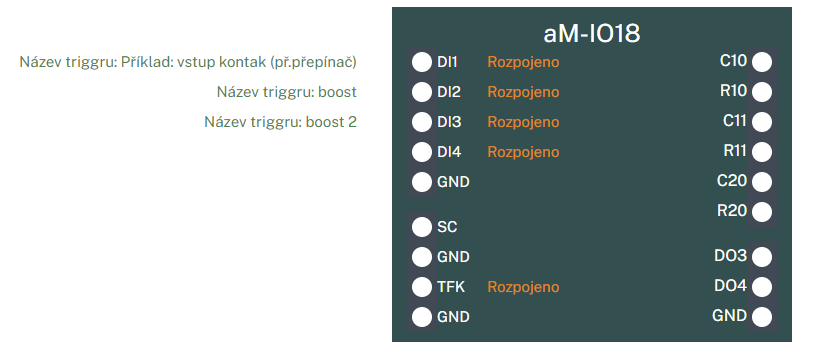 - připojení čtyř externí programovatelných spínací kontaktů ( např. tlačítka Boost, funkce Krb atd.).)