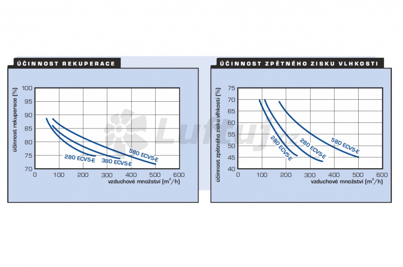 Vestavěný protiproudý rekuperační entalpický výměník nové generace dosahuje účinnosti rekuperace až 92 % a účinnosti zpětného zisku vlhkosti až 80 %.