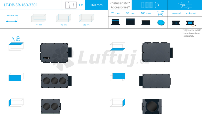 - možné doplnit o klapky pro efektivní rozdělení vzduchu pomocí trvalé nebo dynamické regulace