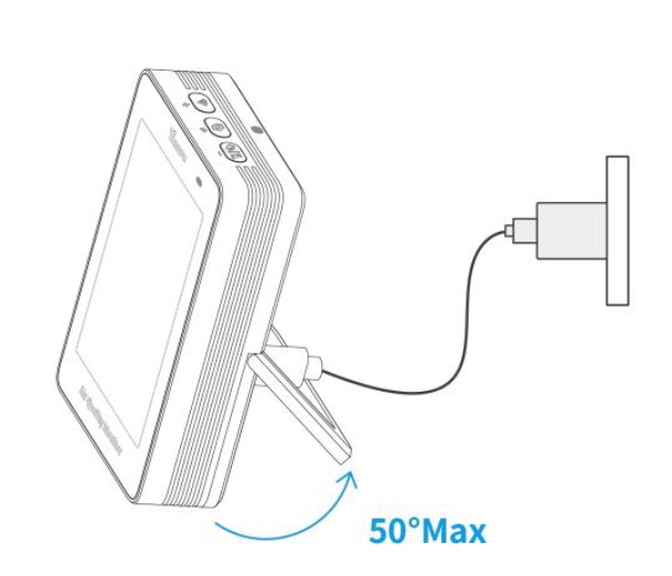 Monitor se umísťuje na rovnou plochu pomocí výklopného stojánku. Komoda nebo polička ve výšce 1,2 a 1,5m nad podlahou v blízkosti elektrické zásuvky je naprosto ideální variantou. Napájí se 5V DC přes USB-C.