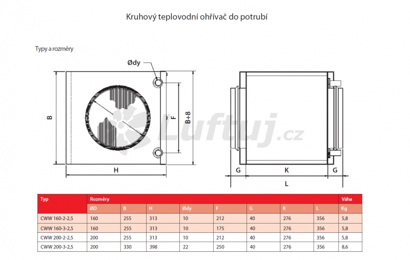 CWW potrubní ohřívač s připojením na kruhové potrubí je navržen pro použití teplé vody jako topného média a je používán pro ohřev přívodního vzduchu do větracích systémů. CWW je také používán jako samostatný ohřívač pro lokální prostory (zóny). Potrubní ohřívač může být doplněn regulátory, čidly, ovládáním, ventily a protimrazovou ochranou pro ovládání prostorové teploty a nebo teploty v potrubí.