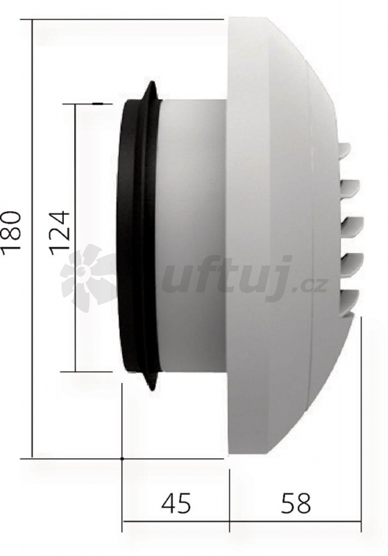 Ventil je vyroben z vysoce odolného PVC s práškovým nátěrem RAL9010. Připojovací hrdlo Ø 125 mm, které je standardní součástí dodávky, je vybaveno gumovým těsněním.